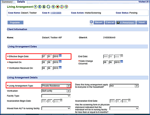 Once you reach the Living Arrangements page, to document when the individual entered the Nursing Facility: